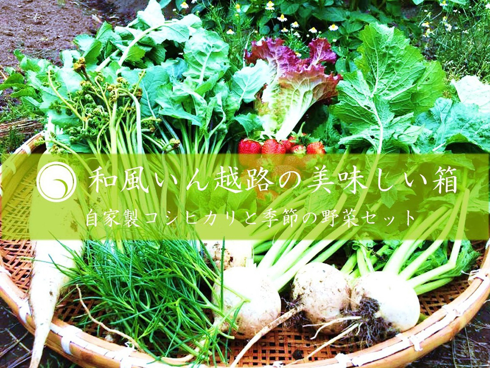 和風いん越路の畑で採れた野菜や山菜、コシヒカリなどをご自宅までお届けいたします。新鮮さをそのままクール便でお送りしますので、ぜひご利用ください。