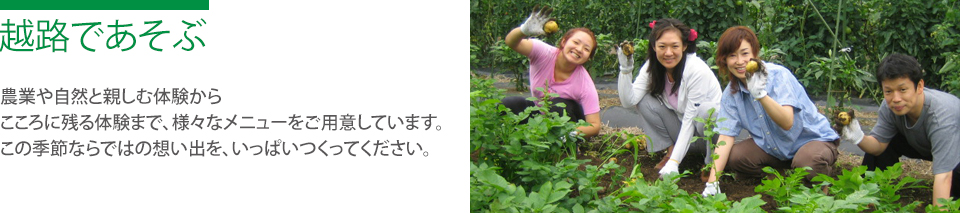 越路の畑で土を耕したり、作物を植えたりと、本物の農業を体験することができます。