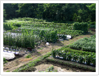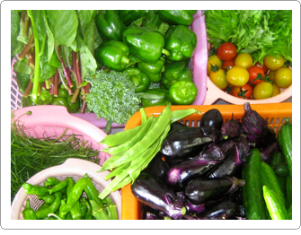 越路の畑は、お母さんが世話をする野菜でいつもにぎやか。種類が多くて管理も大変だけど、ピュアな「野菜の味」がします。「えっ!?、こんなに?」っていう日もあったりします。(笑)