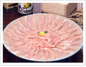 越路で使う豚肉は『越後もち豚』。その名の通り、もっちりとした弾力がありながら柔らかく、脂には臭みがなく甘い。
