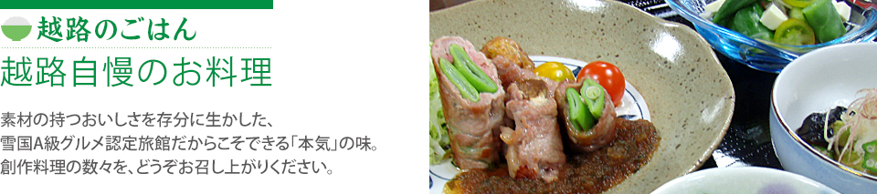 味や匂いはお届けできませんが、素材を生かしたおいしい彩りを、どうぞ目でお楽しみください。越路自慢のお料理の、ほんのわずか一例です。(お料理をクリックすると、拡大表示します)